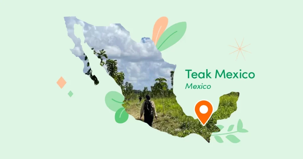 The Teak Mexico project prevents the loss of wildlife habitation from extensive farming and logging while aiming to restore the land and create stable job opportunities in Tabasco, Chiapas, and Campeche, Mexico. The project is heading forest management and creating a supply chain of highly valued teak wood, helping to mitigate global warming, improve soil quality and water conservation, and add biodiversity.